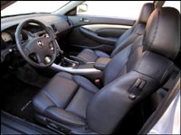Dans sa livrée noire, l'habitacle fait penser à une allemande tant cette couleur est partout. L'ambiance intérieure est sérieuse mais très agréable. On y est très bien assis; un peu moins à l'arrière, mais c'est un coupé, que voulez-vous ! La banquette arrière est d'ailleurs spécifiquement conçue pour deux personnes puisqu'il s'y trouve une console centrale. L'ergonomie est excellente, tout comme la qualité de fabrication. L'équipement est archicomplet (excellente chaîne audio avec commandes au volant, climatisation efficace, beau cuir, confort électrique). À noter que l'implantation de la boîte de vitesses manuelle a entraîné la fabrication d'une console centrale spécifique à cette version.