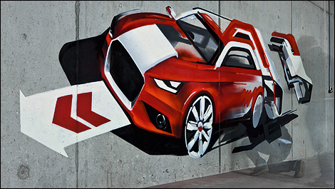 | Stefan Sielaff, Direcetur AUDI AG, et Danny Garand, desginer d'Audi, en discution à propos de la Audi A1. |