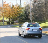 Par contre, pour monter jusqu'à la station de ski ou pour se rendre au chalet en vue d'un week-end de chasse, peu de voitures sont aussi  | | Pour monter jusqu'à la station de ski ou pour se rendre au chalet en vue d'un week-end de chasse, peu de voitures sont aussi sportives, élégantes et pratiques que la A4 Avant.(Photo: Justin Couture, Canadian Auto Press) |