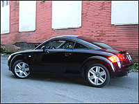 Héritière des plus célèbres voitures sport, la ressemblance de la TT avec les véhicules de course de Auto Union de 1934 à 1939 ou encore avec les Porsche des années 50 n'est pas un accident. Même l'appellation TT provient d'un événement de course datant de 1905 et qui s'appelait le « Tourist Trophy. ». La TT des temps modernes a été dévoilée d'abord en 1995 comme un spectaculaire véhicule concept. Audi mérite pleinement les éloges pour avoir mener le projet à terme. Le petit coupé a finalement été introduit sur le marché en l'an 2000 suivi du cabriolet en 2001. Les propriétaires peuvent éprouver de la difficulté à admettre ce fait, mais la TT est bâtie sur la plateforme que partagent la Volkswagen Golf, la Jetta et la New Beetle. Ça ne devrait pas constituer une ombre au tableau étant donné les bonnes manières offertes par la lignée de compactes de VW. De plus, Volkswagen est propriétaire de Audi. Ne pas réinventer une architecture respecte tout simplement la logique économique et c'est pour cette raison qu'une voiture aussi rafraîchissante que la TT existe.  | | Même si le style provocant et osé de la TT est visuellement stimulant, il impose quelques défis d'ordre ergonomique qui commencent par la longue procédure pour prendre place à l'intérieur. (Photo: Rob Rothwell, Canadian Auto Press) |