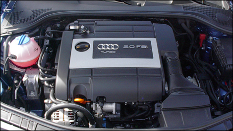 | Le moteur TFSI de 2,0 litres n'est pas très gros ni puissant en soi, mais placé dans une voiture compacte et légère comme l'Audi TT, il s'avère très explosif. |