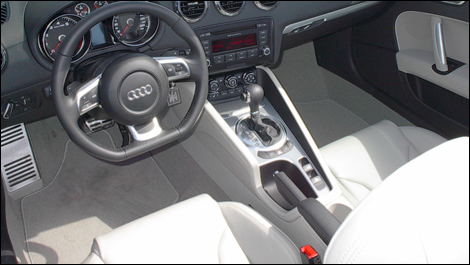 Tout comme la R8, la TT possède également un volant à base carrée afin d'accentuer le caractère sport de son habitacle. Vous savez d'ailleurs comme moi qu'Audi a la réputation de créer certains des plus beaux cockpits dans toute l'industrie automobile, alliant sportivité et raffinement comme aucun autre constructeur ne sait le faire.