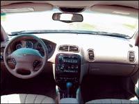 Le concept de cabine avancée chère à Chrysler place les roues aux extrémités du véhicule avec des voies élargies ce qui améliore d'autant la tenue de route.