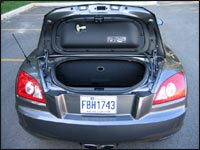 The trunk volume is nearly laughable when the top is down but when the top is up, space is in fact surprisingly generous. There is a divider between the cargo and the roof storage area. This separator must be perfectly in place otherwise the roof will not go down. It actually happened to me on two occasions when I thought there was something wrong with the roof mechanism.