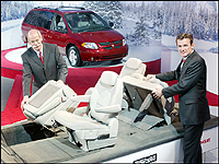 | Le PDG Dieter Zetsche (à gauche) et l'ancien chef des opérations Wolfgang Bernhard, lors du lancement du système innovateur de sièges «Stow 'n Go». (Photo: Joe Wilssens, DaimlerChrysler Canada) |