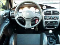 À l'intérieur, les propriétaires de Neon et de SX 2.0 ne seront pas dépaysés. Par contre, plusieurs jeunes friands de performance jubileront en apercevant les deux baquets avant, qui au premier coup d'oeil, sont identiques à de réels sièges de course. Une fois assis, le conducteur voulant jouer les Jacques Villeneuve appréciera les immenses supports du siège, ainsi que la grande fermeté de ce dernier. Il est vrai que pour garder son homme en place, ìl est difficile de faire mieux, du moins, dans une compacte de moins de 30 000 $. Génial en piste, ces sièges sont cependant inconfortables en utilisation quotidienne, et deviennent extrêmement désagréables lorsque vous êtes pris dans une congestion à l'heure de pointe.