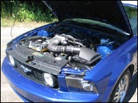 Pour 2005, la Mustang GT propose une augmentation de puissance de 13,3 %. Cela signifie que le moteur V8 de 4,6 litres, qui jouit maintenant de la présence d'une seconde soupape d'échappement au-dessus de chaque cylindre, porte sa puissance à 300 chevaux. Pour les adeptes, ce n'est que cinq petits chevaux de moins que le modèle Mach 1 vendu en 2003 et 2004. Vous conviendrez donc avec moi qu'il serait difficile de se plaindre au point de vue performance. Sur la route, le moteur dégage une sonorité réellement enivrante, qui pousse trop souvent à la délinquance. Les accélérations sont très musclées, avec un 0-100 km/h se situant légèrement sous la barre des six secondes. Donc, n'ayez craintes, vous serez en mesure de suivre allègrement la Camaro SS 2002 de votre voisin, et ce, tout en consommant que 70 % du carburant. Car il faut l'admettre, la Mustang 2005 n'est plus aussi gourmande qu'autrefois. Bien sûr, elle démontre un fort appétit de carburant, mais la surmultiplication du cinquième rapport de la boîte manuelle permet sur autoroute, d'obtenir une cote de 10,5 litres aux 100 kilomètres. En moyenne, on parle de 13,8 litres aux 100 kilomètres, en considérant quelques fortes accélérations.