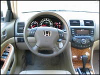 L'Accord est certainement la berline intermédiaire la plus intéressante en matière d'aménagement intérieur. Le conducteur bénéficie de tout l'espace nécessaire pour lui attribuer un confort exceptionnel, ainsi que d'une planche de bord si parfaitement conçue que nul ne pourrait lui trouver un défaut. La console centrale regroupe efficacement les commandes du système audio et de la climatisation, tandis que le bloc d'instruments est appréciable à son éclairage blanc, avec aiguilles rouges. Contrairement à la Civic, qui possède un imposant indicateur de charge de batterie, l'Accord se contente simplement d'un petit témoin, placé sous le compteur journalier. Donc, une personne peu attentive pourrait ne même pas savoir qu'elle est assise dans un véhicule à motorisation hybride. En fait, tout est similaire aux autres versions, si l'on fait abstraction des garnitures intérieures et des teintes utilisées. À ce niveau, je dois admettre que l'Accord Hybrid déçoit. Je ne sais pas si la personne responsable des choix de couleurs est daltonienne, mais il faudrait lui dire qu'une carrosserie de couleur argentée combinée à un habitacle vêtu de deux tons de brun, n'est pas très esthétique. De plus, la fausse boiserie est si ratée qu'elle rappelle celle qui se retrouvait sur la planche de bord des défuntes Dodge Aries et Plymouth Reliant. Mince consolation, la qualité des matériaux est toujours fidèle à la réputation du constructeur, au même titre que l'assemblage.