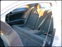 La visibilité tout autour est plutôt bonne, même en regardant à l'arrière, une fois que l'on s'habitue à l'aileron optionnel installé sur le couvercle du coffre. En parlant de coffre, il est profond mais pas très haut, et son seuil facilite le chargement et le déchargement. Le siège arrière rabattable est divisée 60/40 pour augmenter l'espace de chargement, mais le passage entre le coffre et l'arrière est étroit. Il y a deux porte-gobelets en avant, des poches de rangements dans les deux portes, et le cendrier est en option. La trappe à essence s'ouvre de l'intérieur, une touche agréable dans un temps où les manufacturiers essaient de sauver quelques dollars en installant une trappe non verrouillée.