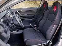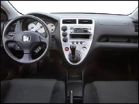 Si l'extérieur de la Civic SiR évoque des souvenirs, l'intérieur présente un sérieux contraste avec ceux des autres Civic actuelles et antérieures, et des autres produits Honda, sauf peut-être la S2000. Tout est pensé de façon à présenter au conducteur tous les contrôles dont il a besoin, et ce, à portée de main, sans devoir quitter la route des yeux. Cela explique la présence des commandes de ventilation placées juste en périphérie du volant, et du controversé levier de vitesses qui trône au beau milieu de la console centrale. Certains trouvent cette configuration loufoque, d'autres esprits impurs l'apparentent à une partie de l'anatomie masculine, et ceux qui restent trouvent l'approche originale. N'empêche, le tableau de bord présente une belle homogénéité; l'allure est dynamique et innovatrice, la prise en mains est aussi rapide que facile grâce aux commandes simples et bien identifiées, et la qualité imprègne tant l'assemblage que les matériaux employés.
