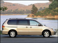 Le style de l'habitacle suit la tendance des lignes extérieures. La planche de bord est sobre et efficace, et tous les éléments sont faciles à consulter. Le levier de vitesses placé sur la colonne de direction vient cependant gêner l'accès aux commandes de ventilation lorsque le véhicule est en marche. Certains détails de finition et d'équipement trahissent l'âge de l'Odyssey. Les habitués de la marque remarqueront facilement que les commandes des essuie-glaces, des phares et des clignotants sont similaires à celle d'une Honda Accord 1986. Il en va de même pour le radio plutôt vieillot qui n'est malheureusement équipé que d'un lecteur de cassette dans la version LX. Vous devrez donc opter pour la version EX si vous désirez un lecteur CD. Pour suivre la tendance nord-américaine, Honda offre désormais la possibilité de commander un système de divertissement avec lecteur DVD et écran LCD rabattable de 7 pouces. Cette option, uniquement disponible sur la version EX-L au coût de 2200$, comprend aussi diverses commandes audio avant et arrière, trois prises auxiliaires pour écouteurs à la troisième rangée ainsi que deux casques d'écoute sans fil qui ne fonctionnent qu'aux rangées médiane et arrière.