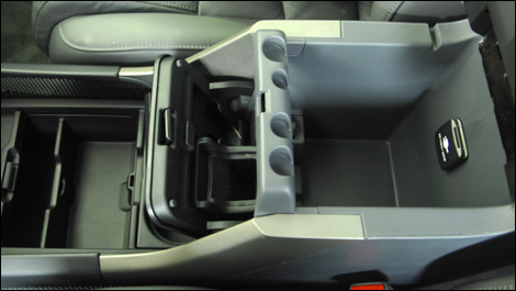 Par contre, on compte beaucoup de rangement, et le compartiment dans la console centrale est pratique, car on peut y cacher des objets de valeur comme un lecteur de MP3 ou une bourse. Cependant, dans un véhicule de plus de 40 000 $ comme celui-ci, le degré d'équipement et le nombre de gadgets devraient être plus importants.