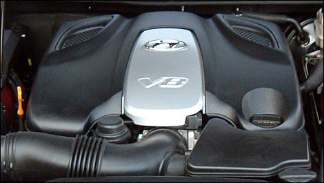 Un V8, une première pour HyundaiOutre le mode à roues motrices arrière (propulsion), l'élément le plus intéressant de cette nouvelle machine est sans contredit son V8 optionnel. Entièrement nouveau, il mise sur les plus récentes technologies de l'industrie telles qu'un système d'induction variable à deux phases et le double calage variable en continu des soupapes. Le V8 peut fonctionner autant à l'essence ordinaire qu'à l'essence super. Dans ce dernier cas, la puissance est de 375 chevaux à 6500 tours/minute et le couple, de 333 livres-pied à 3500 tours/minute. Sinon, attendez-vous à perdre sept chevaux et neuf livres-pied.