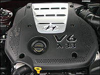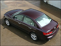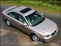Pour rehausser encore l'image de la voiture, on retrouve au niveau du rouage d'entraînement des combinaisons gagnantes. Les Sonata de base reçoivent un fougueux moteur à 4 cylindres de 2,4 litres muni de tous les trucs technologiques de leurs contreparties japonaises. Des arbres d'équilibrage tournant à contresens rendent ce moteur si doux au ralenti, que mon collègue et moi avions peine à savoir s'il était en marche. Un coup rapide sur l'accélérateur confirmait qu'il était vif, et prêt à l'action, ce qui était immédiatement confirmé par une capacité à performer. J'ai trouvé le modèle de base, doté de la manuelle à 5 rapports, aussi agréable à conduire que le modèle V6 muni de l'automatique à cinq vitesses, mais