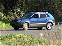 Hyundai n'avait pas de Tucson GL de base, avec moteur 4 cylindres, disponibles lors de l'essai, ce qui fut une honte. Avec un prix suggéré de 19,995$ et un équipement de pointe, tels les freins anti-blocage, le programme de stabilité électronique (ESP), l'anti-patinage, les vitres et portières à commande électrique, et l'essuie-glace et lave glace à l'arrière, le modèle d'entrée de gamme de 140 chevaux devrait bien se vendre. Il fait 136 livres-pied de couple à 4500 tours/minute, ce qui n'est pas une bombe pour un VUS de 1470 kg (3240 lbs), ni quand on le compare à ses compétiteurs à moteur 4 cylindres. Mais pour être juste envers l'idée de Hyundai, le Tucson offre un puissant V6 à un prix similaire aux modèles à 4 cylindres de la concurrence. Je dois aussi mentionner que le modèle de base vient avec une boîte manuelle à 5 rapports, et que si l'on commande la transmission automatique à 4 vitesses, le mode manuel Shiftronic fait partie de l'ensemble.