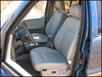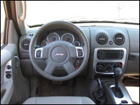 Aménagement intérieurQue vous soyez accoutumé à conduire un GMC Suburban ou une Ford Festiva, vous ne pourrez démentir le fait que l'habitacle du Liberty est très restreint. En prenant place à bord, le conducteur remarque immédiatement le faible espace accordé aux jambes et aux épaules, ainsi que le manque évident de compartiments de rangement. Une personne de taille moyenne s'y habitue cependant facilement, mais si vous êtes à la recherche d'espace, le Liberty est à proscrire. La position de conduite est également particulière, parce que très avancée et aussi très élevée. Personnellement, j'ai bien aimé, mais plusieurs personnes de mon entourage l'ont détesté.