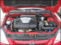 Le moteur 4 cylindres de 1,6 litre est sans doute le plus grand signe de vieillesse de la Rio. Il manque de souplesse, il est rugueux, en plus d'être tout sauf discret. De plus, avec un maigre 104 chevaux de puissance, il n'est évidemment pas un foudre de guerre. Il faut donc calculer avant d'effectuer un dépassement, et ne pas tenter de jouer les Michael Schumacher. Le plus dommage, c'est que la