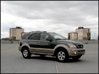 Sur la route, ce Kia propose un comportement honnête. La suspension manque légèrement de fermeté, mais offre en contrepartie, un bon confort. En virage, la prise de roulis est relativement prononcée, et oblige par conséquent le conducteur à user de prudence. Fort heureusement, les masses sont bien réparties, de façon à offrir un comportement neutre. Sur un chemin accidenté, le Sorento laisse paraître un train arrière légèrement sautillant, de par son essieu rigide. Sa stabilité routière, et particulièrement à vitesse d'autoroute, surprendra les plus sceptiques. Sa sensibilité aux vents latéraux n'est que très légère et la direction, malgré un petit point mort au centre, s'avère précise. Cependant, comme en ce qui concerne la suspension, un peu plus de fermeté serait appréciée.