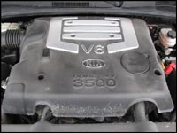 Acceptable sans toutefois être enivrant, le moteur V6 de 3,5 litres multisoupapes du Sorento propose une puissance modeste, qui se chiffre à 192 chevaux. Malgré tout, les accélérations sont convenables, et les reprises permettent de doubler avec aisance sur une route de campagne, sans avoir à prévoir une distance trop longue. Légèrement rugueux, il est relativement bruyant en accélération, mais se calme drôlement lorsqu'il atteint sa vitesse de croisière. Le seul point réellement négatif de ce moteur est sans contredit sa