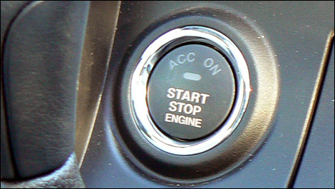 Une fois à bord, le moteur se démarre de la même façon. Au lieu d'insérer la clé dans le contact, on n'a qu'à appuyer sur un bouton pour réveiller le moteur. Il suffit de rappuyer dessus pour l'éteindre.