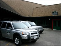 Toutefois, ce dernier n'offre pas à proximité une école de conduite tout-terrain de Land Rover. La réception de l'école est occupée entre autres par une boutique Land Rover où il est possible d'acheter vêtements, tasses à café et sacs de voyage. C'est aussi l'endroit où les apprentis spécialistes de 4x4 assistent à une courte présentation et reçoivent quelques précieuses instructions. Le personnel s'assure de nous fournir tout ce qu'il faut pour la journée, notamment un lunch et des vêtements appropriés. Mon guide était Catherine Lemieux, une jeune demoiselle souriante experte en conduite tout-terrain.