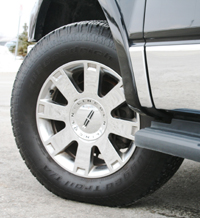 Maintenant, je sais qu'il semble que j'aie eu tout un lot de demandes, mais ce camion peut en prendre, puisqu'il peut accepter jusqu'à 3857 kg (8500 livres) de chargement sur une remorque. Et malgré quelques trucs un peu kitsch à l'intérieur, le LT est une antre spacieuse, de grande classe, et il chrome tous les bons trucs à l'extérieur aussi, particulièrement la calandre dont j'ai parlé plus tôt, plus les pare-chocs, les rétroviseurs, les rails de la caisse, ainsi qu'une large bande qui s'étend du pare-chocs avant jusqu'à l'arrière, étant interrompue seulement par les puits de roue... méchant chrome. Avant que je n'oublie, mon LT venait avec les roues optionnelles de 18 pouces en aluminium usiné au look chromé, toutes aussi épatantes. Il prend l'interprétation de la classique calandre en chute d'eau de Lincoln à un niveau supérieur, celui d'un pick-up de pleine dimension.