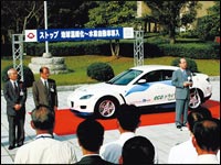 Japon. En effet, non seulement cette RX-8 fonctionne-t-elle sur de l'essence, mais sur une simple pression d'un bouton au tableau de bord, elle passe à l'hydrogène.