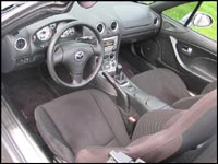 Si vous êtes actuellement propriétaire d'un véhicule à vocation familiale, et que vous songez à le remplacer par une Miata, dites-vous que le passage se compare à celui d'une personne qui passe d'une grande maison de campagne à un 2 ½ ! Avec cette dernière, il faut apprendre à minimiser notre attirail, et à voyager léger. Certains devront même suivre un régime, s'ils veulent se sentir confortable à bord. Très petit, l'habitacle de la Miata est toutefois bien pensé, pour celui qui préconise d'abord la conduite. Toujours dans la Mazdaspeed, le conducteur prend place sur un siège de tissu offrant de bons supports, qui lui permet de trouver une position de conduite optimale. Les pédales sont bien positionnées, le levier de vitesses tombe parfaitement dans la main, et le petit volant est un charme à manier. Seul bémol, il n'est pas réglable en hauteur.