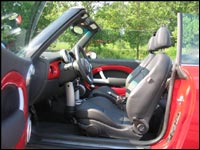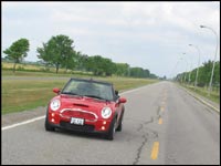 cabriolet étonne par une isolation comparable à celle de la Volkswagen, dont la réputation en la matière n'est plus à faire. Hélas, la visibilité arrière est cauchemardesque, et oblige souvent à jouer aux devinettes. C'est sans doute pour cette raison que Mini a cru bon d'offrir en option, un système d'aide au stationnement en marche arrière, avec avertisseur sonore. Lorsque la capote est abaissée, la visibilité arrière n'est guère mieux, le champ de vision étant bloqué par la présence des arceaux de sécurité et du toit replié. Fait intéressant, il est possible d'ouvrir que partiellement la capote, qui se transforme donc en toit ouvrant. Cependant, lorsque placée en cette position, la turbulence à vitesse d'autoroute est telle, que vous voudrez immédiatement l'abaisser ou la fermer complètement.