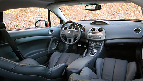 Face à la Ford Mustang à moteur V6, l'Eclipse fait bonne figure. Surtout quand on prend place à bord. L'environnement n'a rien de rétro. L'habitacle a été conçu comme un gant ajusté : les sièges sont moulants à souhait et procurent un maintien apprécié dans les courbes; des sièges chauffants, de surcroît, et en équipement de série s'il vous plaît (même dans l'Eclipse GS). Bravo !