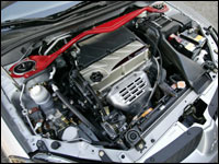 Ayant été déçu par les performances de la Lancer Sportback LS précédemment essayée, je ne peux que constater, avec l'essai de cette Ralliart à boîte manuelle, que l'automatique était la principale responsable d'un rendement décevant. Contrairement à la Sportback LS qui possède également le moteur 2.4 litres, celui de la Ralliart développe un maigre deux chevaux de plus. Cette puissance accrue est produite par le système d'échappement sport, dont la sonorité est des plus agréable.