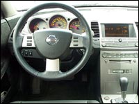 La planche de bord reprend plusieurs éléments de la fameuse 350Z, dont le bloc de cadrans indicateurs et le volant. Sur les versions SE, on retrouve une console centrale aux allures d'aluminium tandis que la version SL a droit à la boiserie, plus noble. L'ensemble des accessoires et diverses commandes est judicieusement positionné, offrant une ergonomie sans faille et une bonne facilité d'utilisation. Par contre, je dois admettre que la finition et la qualité des divers plastiques déçoivent énormément, à un point tel qu'on se demande si on est à bord d'une Pontiac. Aucun reproche n'est à faire du côté de l'assemblage, mais Nissan aurait fort à gagner à améliorer la qualité des matériaux, surtout que la réputation de la marque en la matière était auparavant excellente.