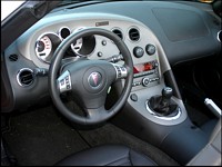 pré-production et les Solstice qui sont maintenant vendues doivent avoir été améliorées. Ce qui m'a ravi, c'était les commandes extrêmement bien conçues et bien assemblées du bloc central, qui comprend une interface audio et un climatiseur faciles à utiliser. Les bouches d'air circulaires au contour chromé témoignent également d'une ingénierie solide, en plus d'avoir un look sport approprié. Je ne craindrais absolument pas de m'en servir fréquemment pendant plusieurs années.