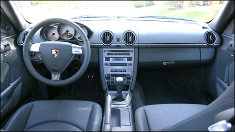 Le volant, d'un bon diamètre, se règle en hauteur et en profondeur. Le rangement est minimal, et l'on oubliera l'audio car la faible insonorisation et la sonorité du moteur ne permettent pas d'écouter de la musique. L'insonorisation de la Cayman de base est meilleure à cet égard. De plus, il faut compter sur le bruit continu de la ventilation, essentielle pour garder l'habitacle confortable.
