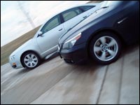 Si vous avez mis toutes vos économies pour les deux cylindres en plus dont ces voitures profitent au détriment des modèles à six cylindres, ne vous en faites pas, cet argent vous donnera plus de plaisir que ne le ferait le meilleur des RÉER. Sur papier, le moteur à plus grand déplacement de la 545i procure 20 livres-pied de couple de plus que celui de l'Audi, mais cinq chevaux en moins. Le V8 de l'Audi est une version légèrement moins poussée du moteur de 4,2 litres que l'on trouve dans la petite S4; il délivre 330 chevaux et 310 livres-pied de couple, soit 30 chevaux et 15 livres-pied de plus que le 4,2 litres de l'ancienne A6. Comme c'est aussi le cas dans la S4, sa sonorité digne de NASCAR finit toujours à nous soutirer un sourire de satisfaction. Plus doux que le 4,2 de l'ancienne A6, il roule tout en douceur du ralenti jusqu'à sa limite de 6800 tours-minute. La seule note négative est que lorsque l'on accélère, elle est aussi abrupte qu'un maître d'hôtel grincheux.