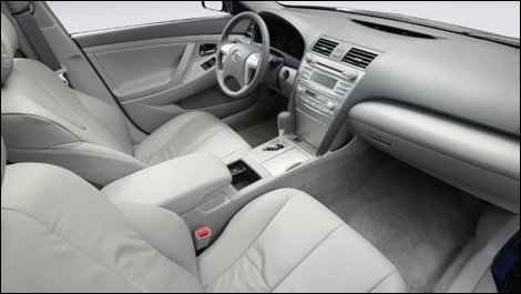 Le style intérieur est très sobre, comme la carrosserie. L'éclairage ambiant, le soir venu, est d'un très bel effet et reprend la thématique du verre rétroéclairé; pourtant, ce n'est que du plastique vert. L'ergonomie générale est sans reproche. Dans les faits, la Camry a atteint un très haut degré de perfectionnement dans la catégorie des berlines intermédiaires.
