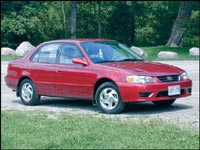 La Corolla de huitième génération a été lancée en 1998, et sa carrosserie retouchée l'an dernier se distingue par ses phares aux formes irrégulières. Assemblée en Ontario, sa gamme compte trois versions -- CE, Sport et LE -- proposées en de nombreuses variantes.