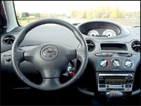 Malgré l'ajout d'un tachymètre pour 2005, la planche de bord de l'Echo demeure simpliste. L'instrumentation réduite au minimum inclut l'odomètre et l'indicateur de niveau de carburant. On n'y retrouve même pas de jauge à température du moteur, cette dernière étant remplacée par un simple voyant lumineux. Quoi qu'il en soit, ce n'est pas tant le nombre d'indicateurs comme l'emplacement qui déroute les conducteurs. On s'y habitue rapidement, mais le fait de retrouver le bloc d'instruments au centre de la planche de bord à quelque chose de peu conventionnel que plusieurs détestent. Cependant, il est certain que le côté ergonomique de la planche de bord est on ne peut plus poussé. La disposition des cadrans permet une lecture sans quitter les yeux de la route, la chaîne audio et les commandes de ventilation sont facilement à la portée de la main et les essuie-glace s'activent sans même qu'on ait à y penser. Les plus perfectionnistes peuvent cependant parler de porte-gobelets placés un peu trop en retrait, et d'un volant dont le degré d'inclinaison est ridicule.