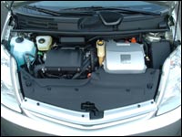 Atkinson (presque à cinq temps) produit 76 chevaux et 82 lb-pi de couple par rapport à 70 chevaux pour l'ancien. Même s'il est doté du système de calage variable des soupapes VVT-i comme la plupart des autres engins Toyota, sa puissance spécifique demeure modeste, et il reçoit l'appui d'un moteur électrique d'une énergie de pointe de 67 chevaux (50 kW) avec un couple de 295 lb-pi entre 0 et 1200 tr/min, alors que la précédente disposait de 44 chevaux et 258 lb-pi. La puissance passe aux roues avant par l'intermédiaire d'une transmission à rapports continuellement variable à engrenages et commande électronique qui fonctionne sans heurt.