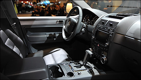Le Touareg TDI dispose d'un V6 de 3,0 litres turbodiesel qui développe 221 chevaux et un couple de 407 lb-pi. Le moteur satisfait les normes Tier 2/Bin 5, tout comme le 2,0 litres TDI que l'on retrouve dans les berlines et familiales Jetta. La capacité de remorquage du Touareg diesel est de 3500 kg ou 7716 lbs, et le camion peut atteindre les 96 km/h (60 mph) en 8,5 secondes. Le système à quatre roues motrices et la suspension pneumatique sont toujours au rendez-vous. Le Touareg TDI sera disponible en concession au printemps à un prix de départ de 48 975 $.  | | Volkswagen Touareg TDI 2009 | Photos : Volkswagen