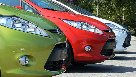 | Parked in a crowd, the Fiesta testers looked like a handful of Jolly-Ranchers. |