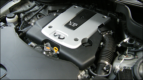 FX35 powerplant remains at 3.5-litres worth of displacement. This DOHC 24-valve naturally aspirated V6 is now capable of mustering an impressive 303 horsepower @ 6,800 rpm and 262 pound-feet of torque @ 4,800 rpm.