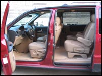 Même si les sièges de deuxième rangée sont rabattables, l'accès à l'arrière n'est pas de tout repos. Il faut non seulement grimper à bord du véhicule, mais aussi se contorsionner pour se glisser entre le siège et la ceinture de sécurité. Difficile pour quelques-uns d'entre vous, cet exercice est toutefois effectué la plupart du temps par de jeunes enfants, ce qui rend cette critique inutile. La banquette pouvant accueillir trois enfants est bien sûr amovible, rabattable et divisée en deux sections. Elle se rabat à plat pour faciliter le chargement de gros objets, tout comme ceux de la rangée médiane. La soute à bagages reçoit quant à elle une bonne note du côté des commodités, puisqu'il est possible d'obtenir un pratique boîtier de rangement fixé au sol, évidemment amovible, qui se trouve au même niveau que la banquette, lorsque rabattue. Les panneaux latéraux cachent également quelques commodes accessoires, comme une trousse d'outils de gonflage avec compresseur intégré et une prise de courant de 110 volts. La Relay offre même une paire de gants avec bande antidérapante, dans le but de protéger les mains de celui ou celle qui remplace la roue suite à une crevaison !