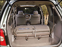 The aforementioned power-operated rear doors are available on LX models and are included among the standard features in top-line ES trim. Both doors may be opened or closed by switches on the keyless-entry remote control, by a dashboard-mounted switch, or by switches located on the inside of the doorframes. Obstacle sensing detectors are designed to stop the door from closing on little fingers, and from what I could tell work pretty well. A master switch on the dashboard will disconnect the power function allowing for the doors to be opened and closed manually.