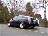 The 2003 3.5 SE is the sportiest of the bunch, with a standard sport-tuned suspension, 17" x 7.0" Sport aluminum-alloy wheels on P215/55VR17 all-season tires, standard tires are P205/65TR16 all-seasons, fog lights, dual exhaust with chrome-tip finishers and automatic climate control. A $2,100 leather package is available with 8-speaker BOSE audio system with a 6CD in-dash changer, garage door opener, auto dimming rearview mirror, heated front seats, leather door trim and of course, leather seats. Nissan is smart to make its $1,000 glass sunroof optional, as not all driver's, especially those taller than average, appreciate the feature's headroom encroachment. The last feature available is a $1,300 4-speed automatic transmission, and oh yes, less I forget the $285 Satin White paint. Altogether a fully loaded 3.5 SE will set back its owner $33,723.