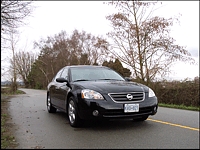 The Altima still sports standard 16-inch wheels on 205/65R16 tires, while 16 and 17-inch alloy rims on 215/55R17 tires are available. My test car was equipped with the latter, which made for spirited handling on the mountain curves near my home. When introduced last year its front suspension design incorporated a lot of aluminum parts, making it 8% lighter than a comparable steel design. Its cradle-type frame with offset coil springs and lower transverse link layout proves decisive when needed, turning in quickly without any nose plowing - probably because Nissan has reduced lateral forces acting on the front suspension by 30%.