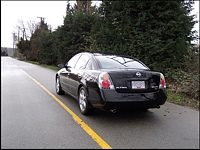 Its multi-link independent rear suspension (IRS), which is similar to Infiniti's Q45 sedan, is derived from the race winning Japanese-market Skyline supercar. Nissan separates the rear shocks and springs to limit friction. The shocks are also aligned with the center of the rear wheels, allowing improved damping and reduced harshness. What's more the rear suspension components are about 6% lighter than that of the 2001 Altima. Nissan also increased torsional rigidity by 70 percent over the old model, which improves NVH levels while inspiring superior driving dynamics.