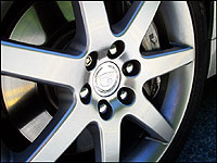 | The 4-piston calipers and massive Brembo rotors bring the Cadillac to a stop as fast as a Porsche 911. (Photo: Shawn Pisio, Canadian Auto Press) |