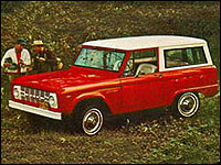The original two-door Bronco rolled off of Ford's assembly lines in time for sale in August 1965 as an answer to Kaiser Jeep's CJ and Wagoneer, the latter of which only sold a few thousand a year, Toyota's rugged Land Cruiser FJ and the International Harvester Scout. The appeal of these early SUVs was for outdoorsmen who needed four-wheel drive for hunting and fishing excursions into the countryside and many of these early vehicles, despite their barebones styling, were bought by fairly well to do families.