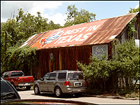 | Like the old Burma Shave roadside signs of the 1950s, Ford pulled out the stops during the recent ride-and-drive around San Antonio, Texas, to advertise that the new F-150 was making the rounds. This sign is posted on Buck's Pottery Shop in Gruene, a small town that is home to a dance hall, antique shops, and water tubing rides on the Guadalupe River. (Photo: Joe Cabadas, Canadian Auto Press) |